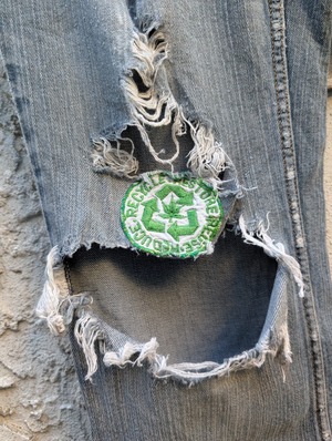 パッチワーク&ダメージデニムパンツ