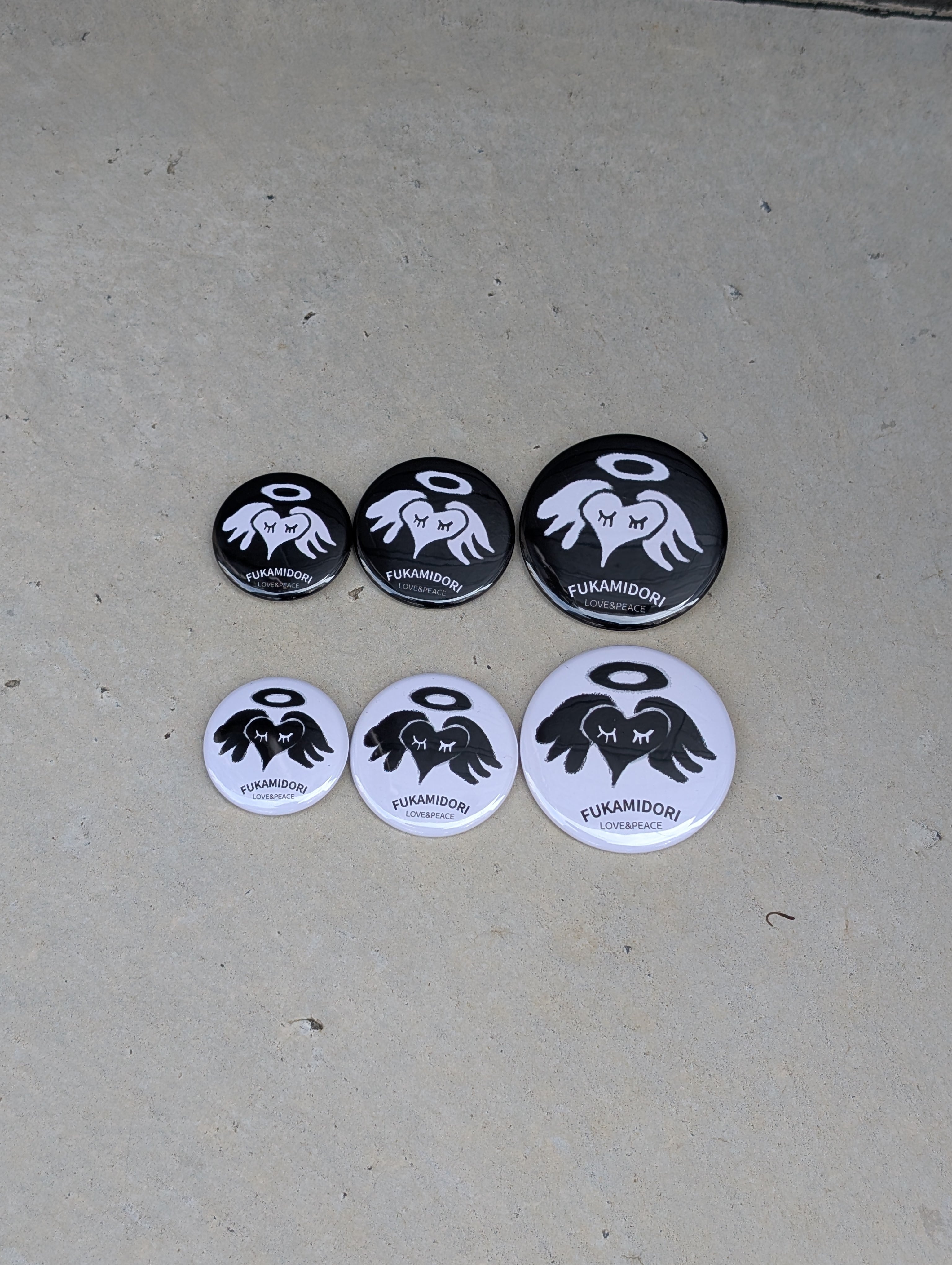 黒地の缶バッジ3種セットになります。