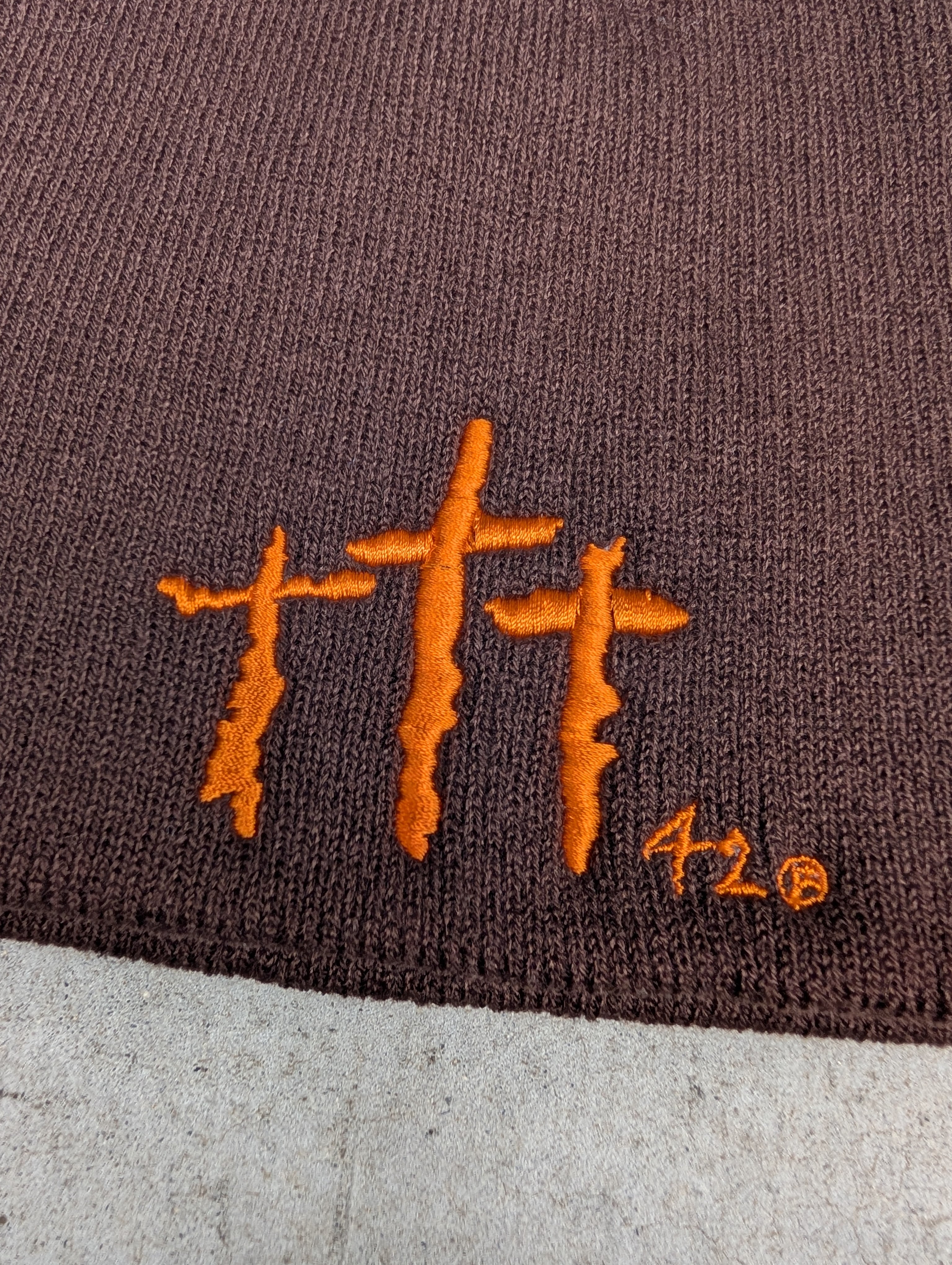 "深緑" CROSS embroidery beanie / BROWN