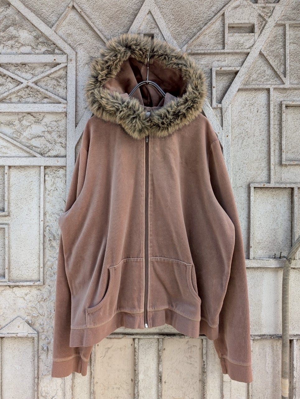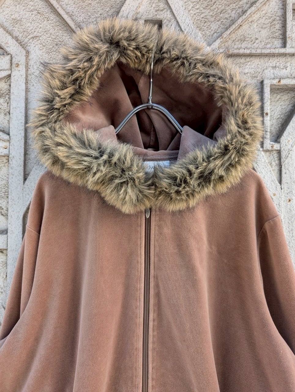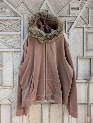 "CHADWICKS" velour fur zip hoodie