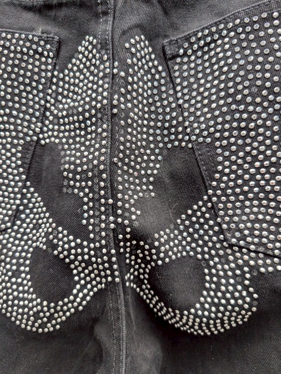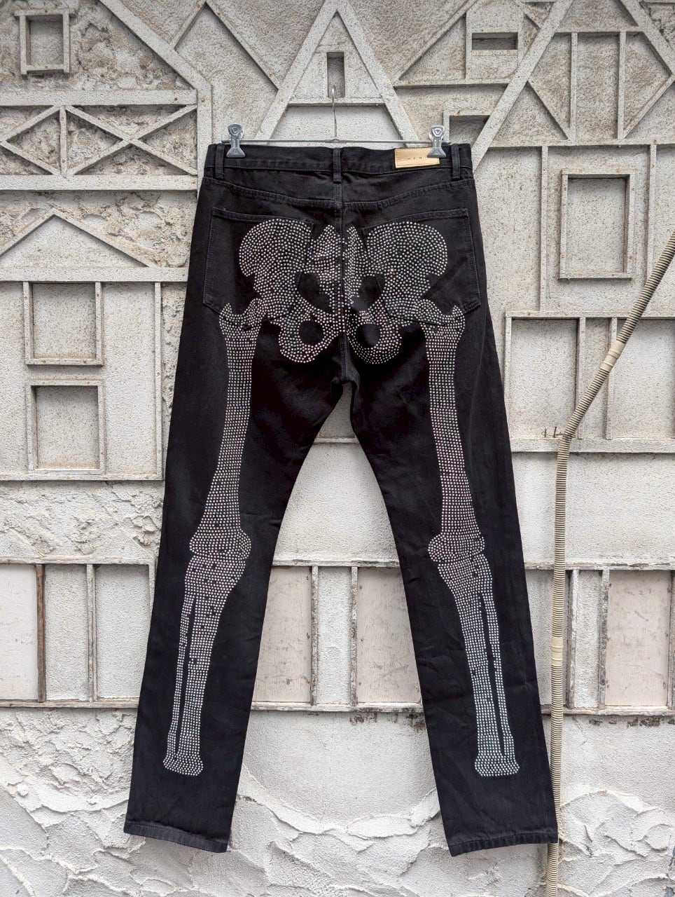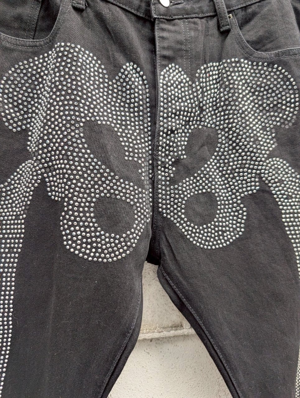 "MNMI" rhinestone born denim pants