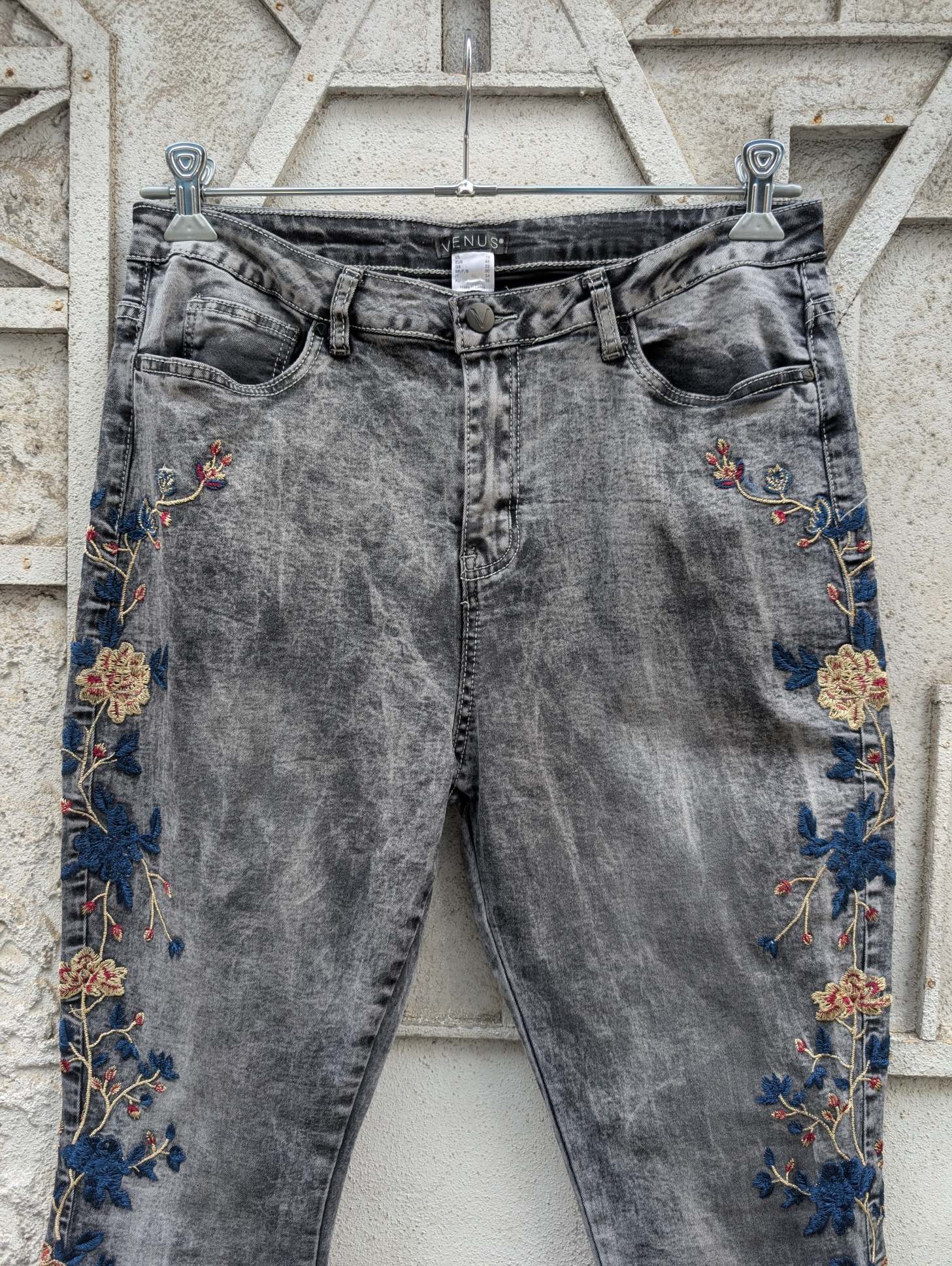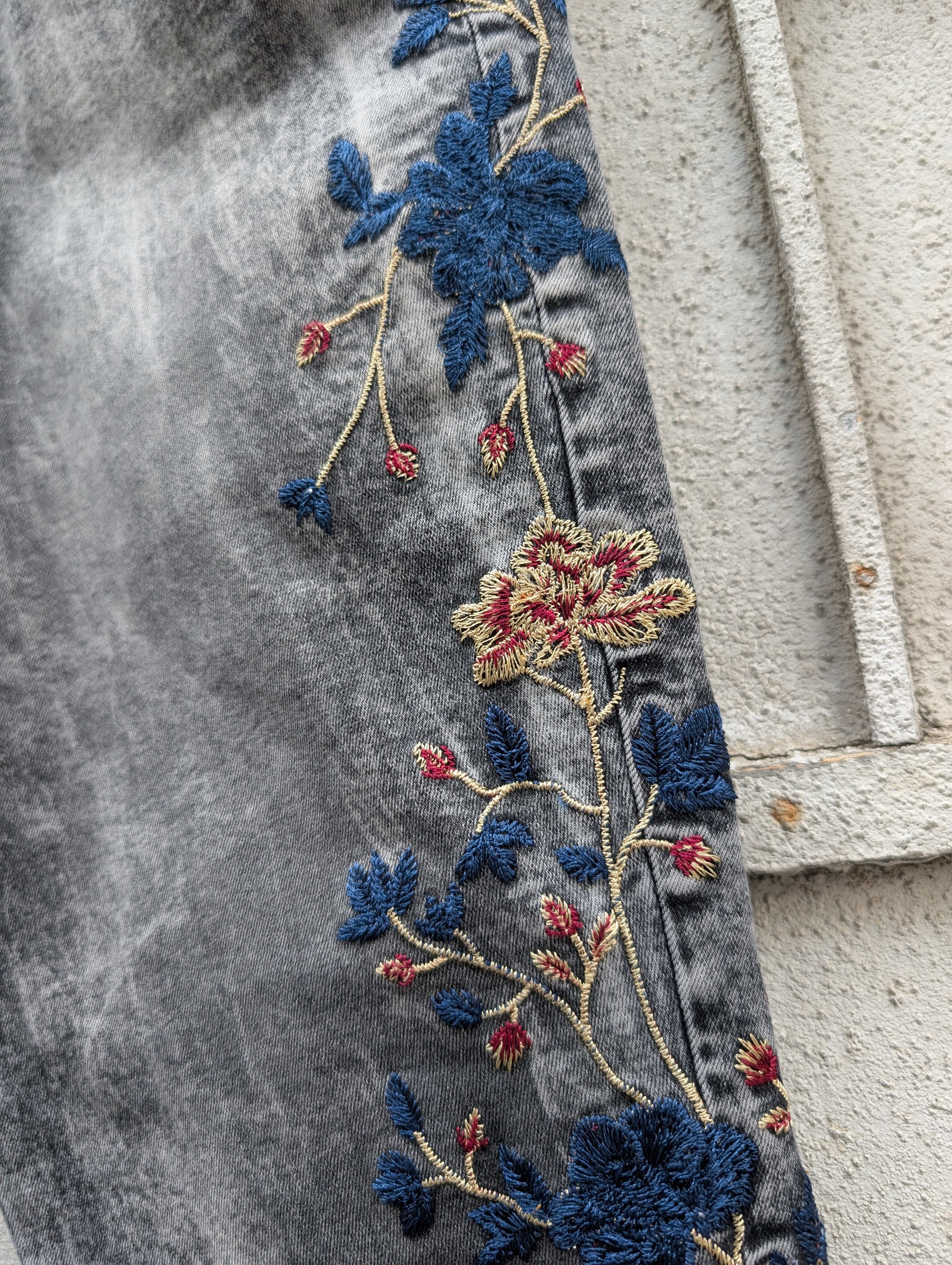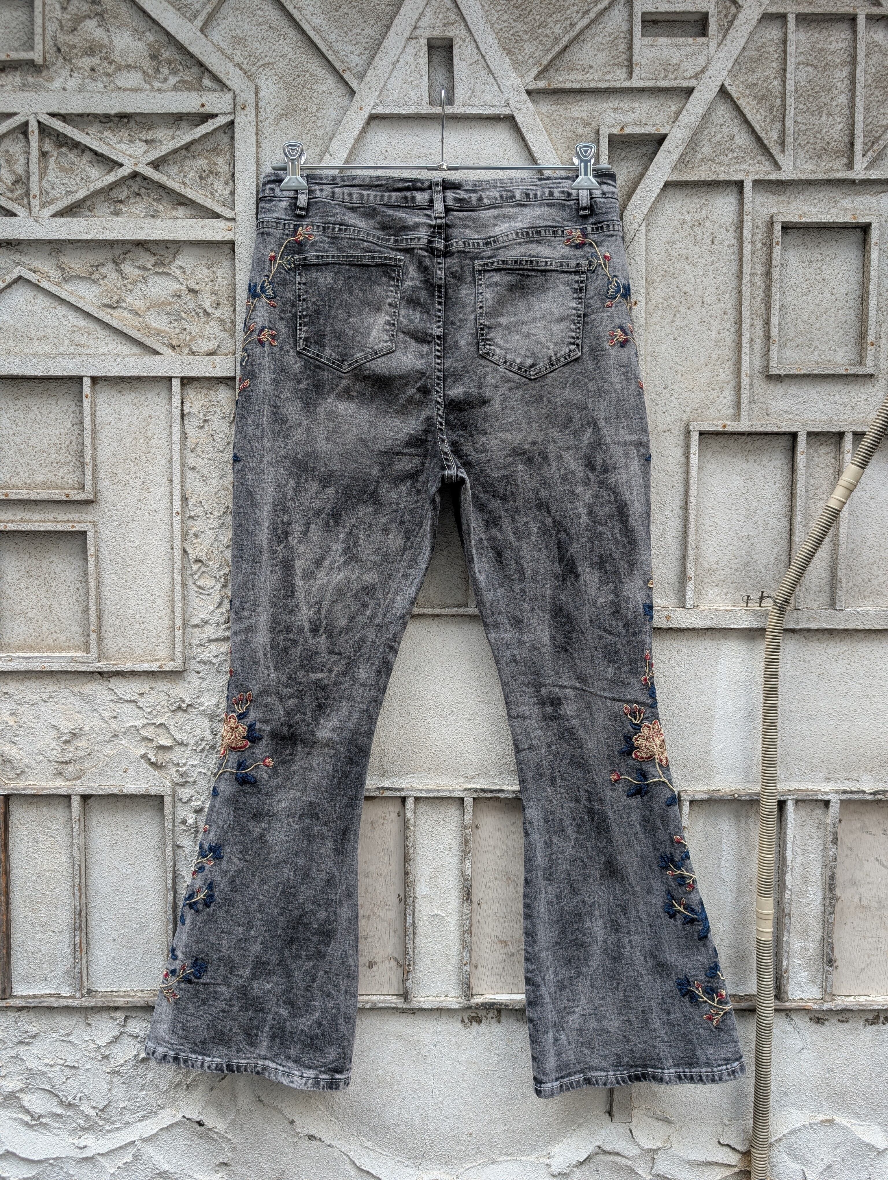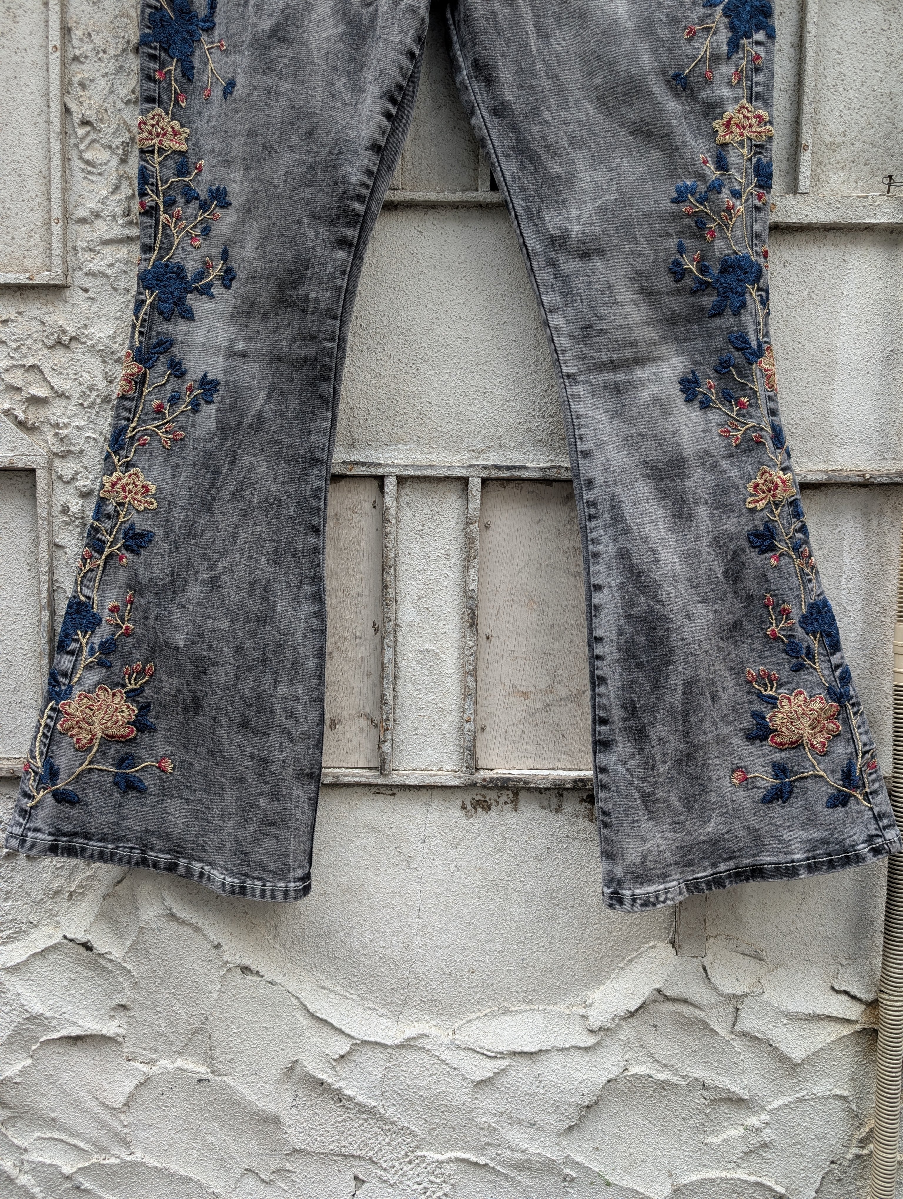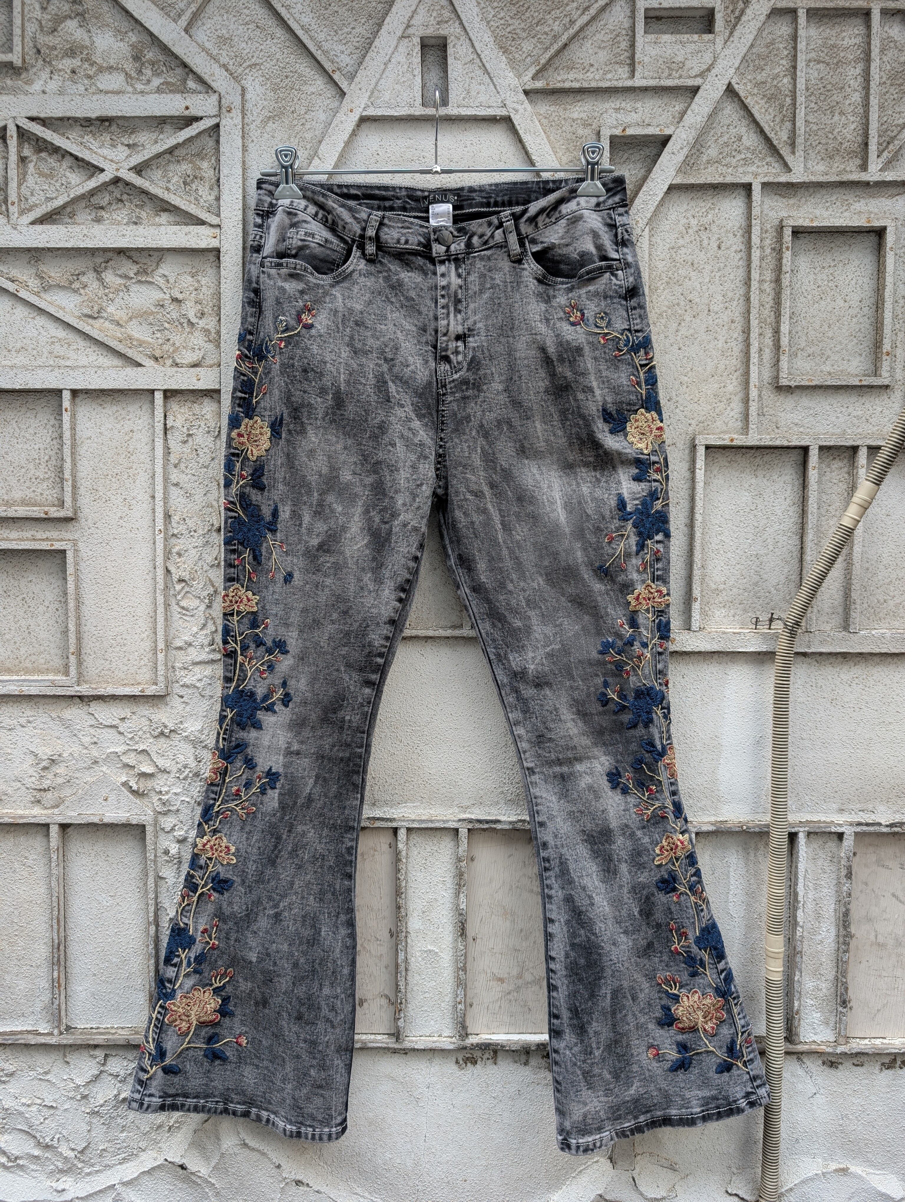 "VENUS" flower embroidery flare denim pants