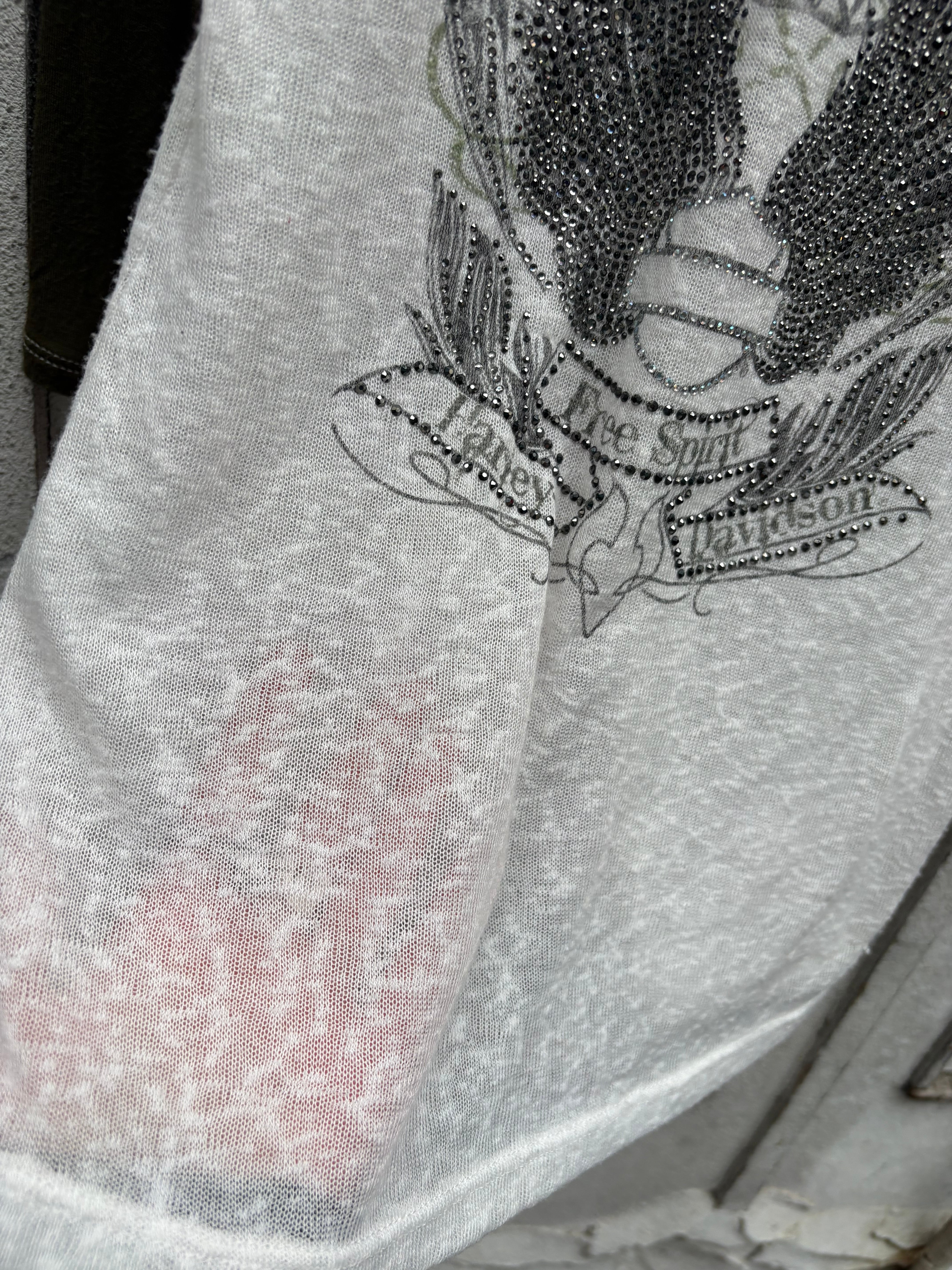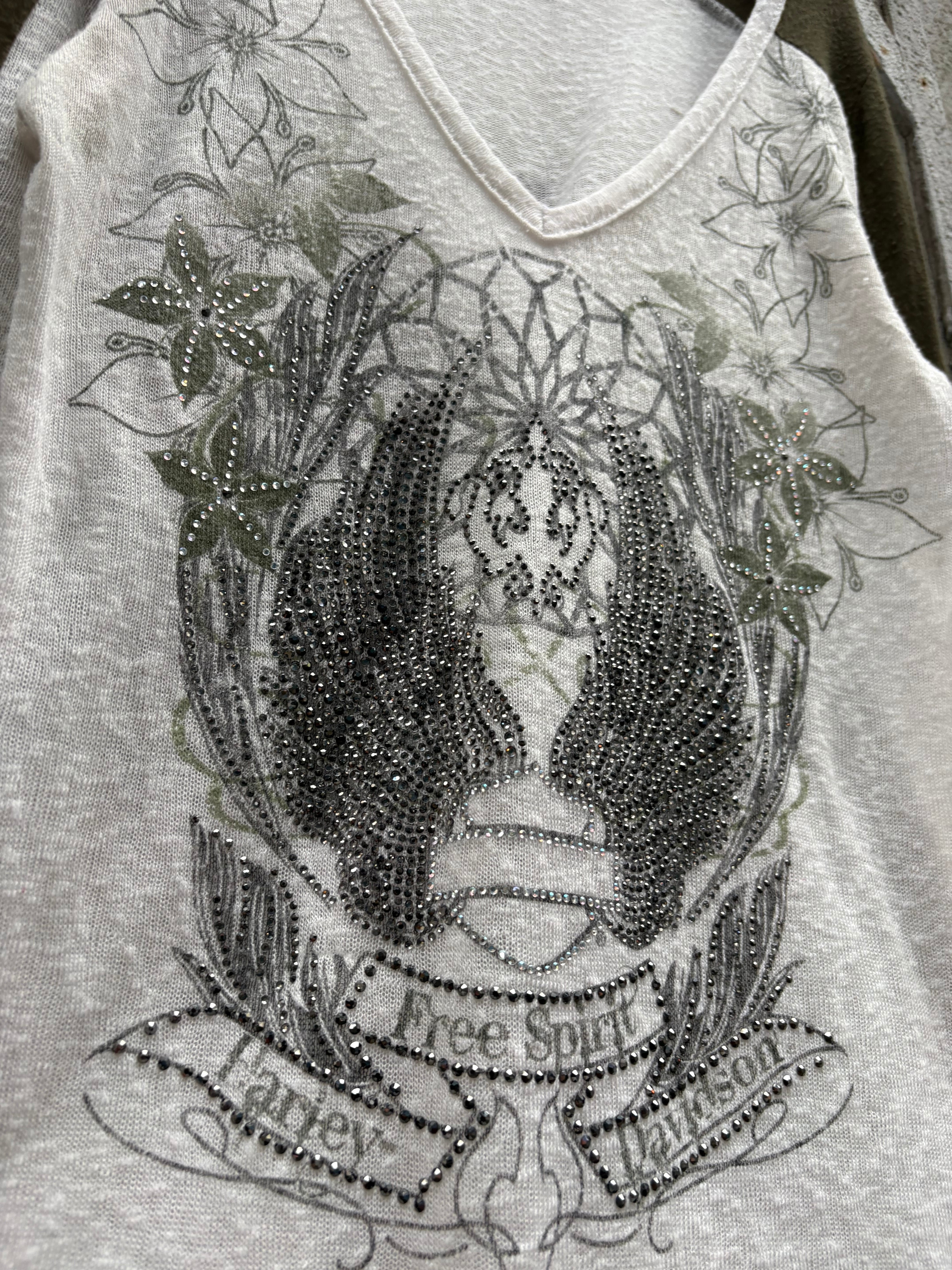 "GRUNGE" rhinestone v-neck raglan L/S