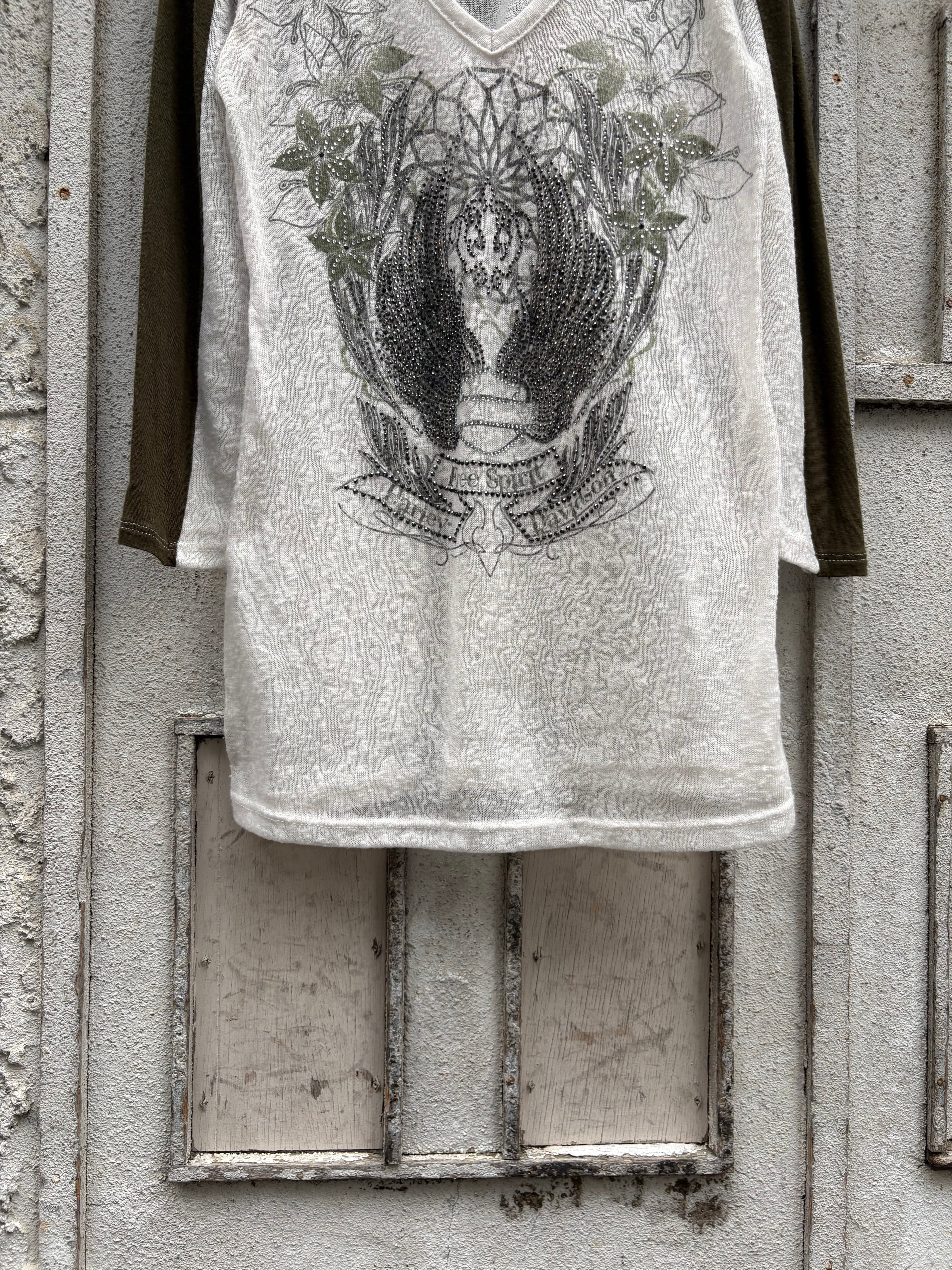 ラインストーンvネックラグランロングスリーブ