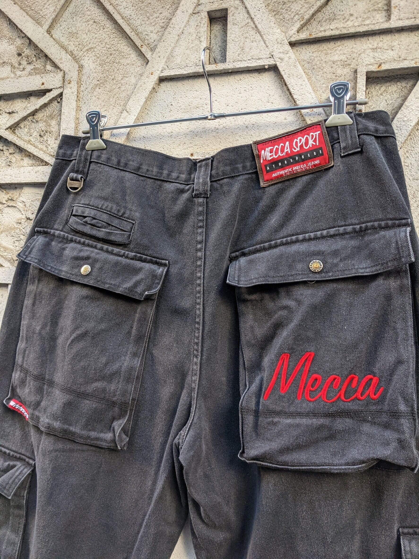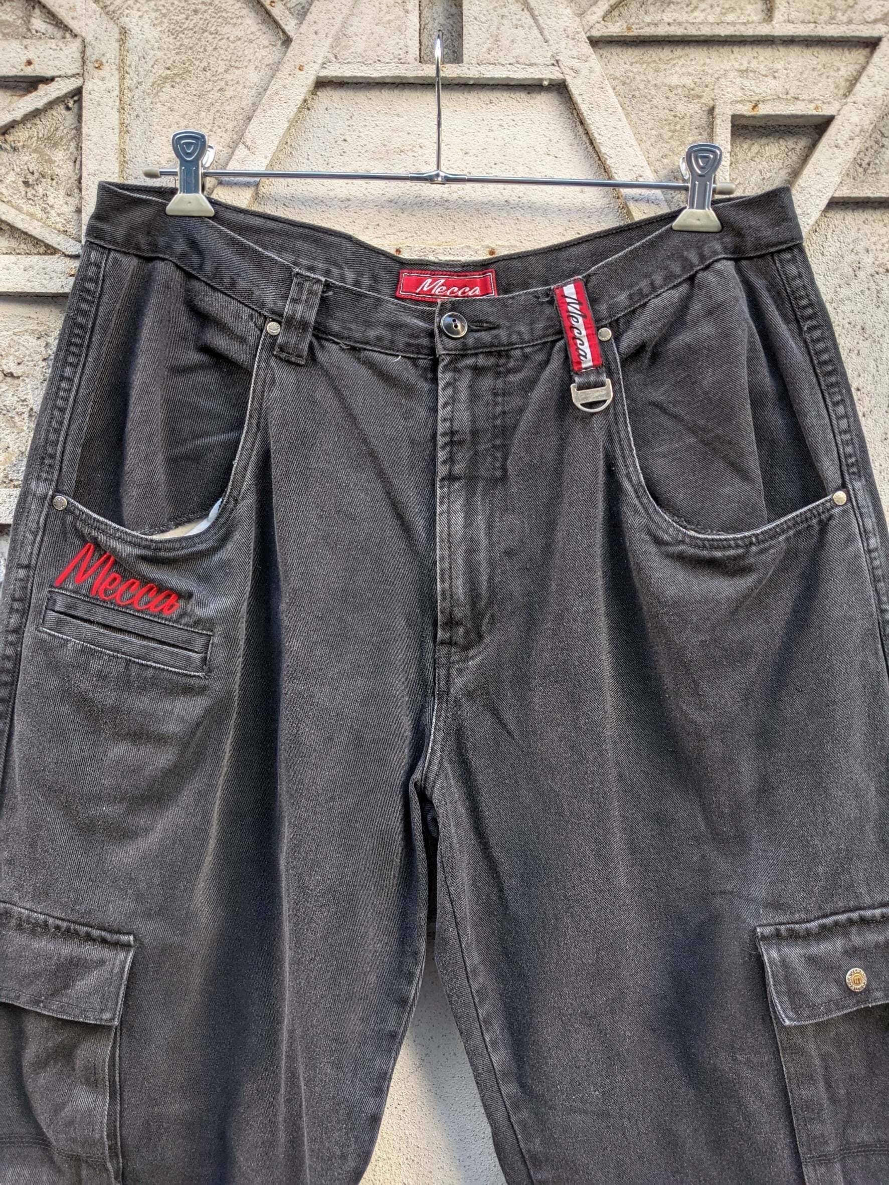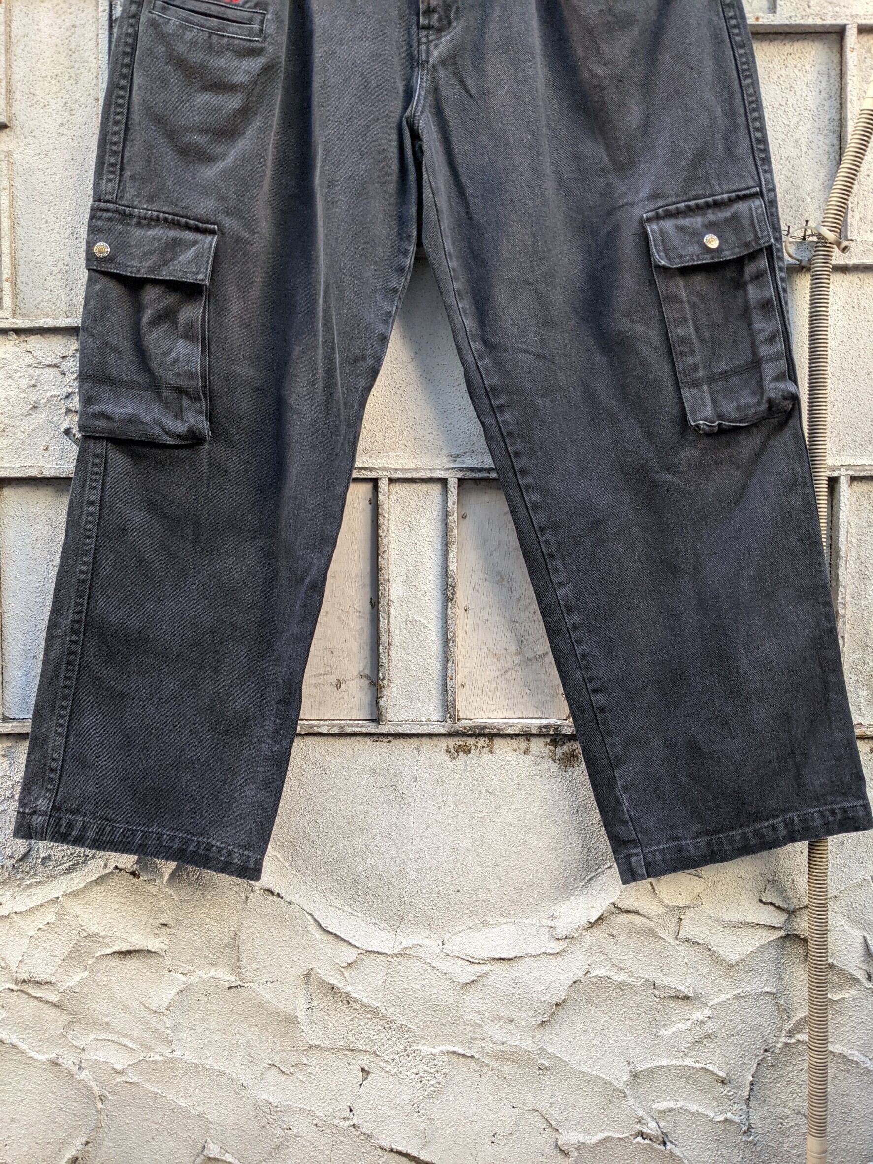 "MECCA" wide cargo black denim pants