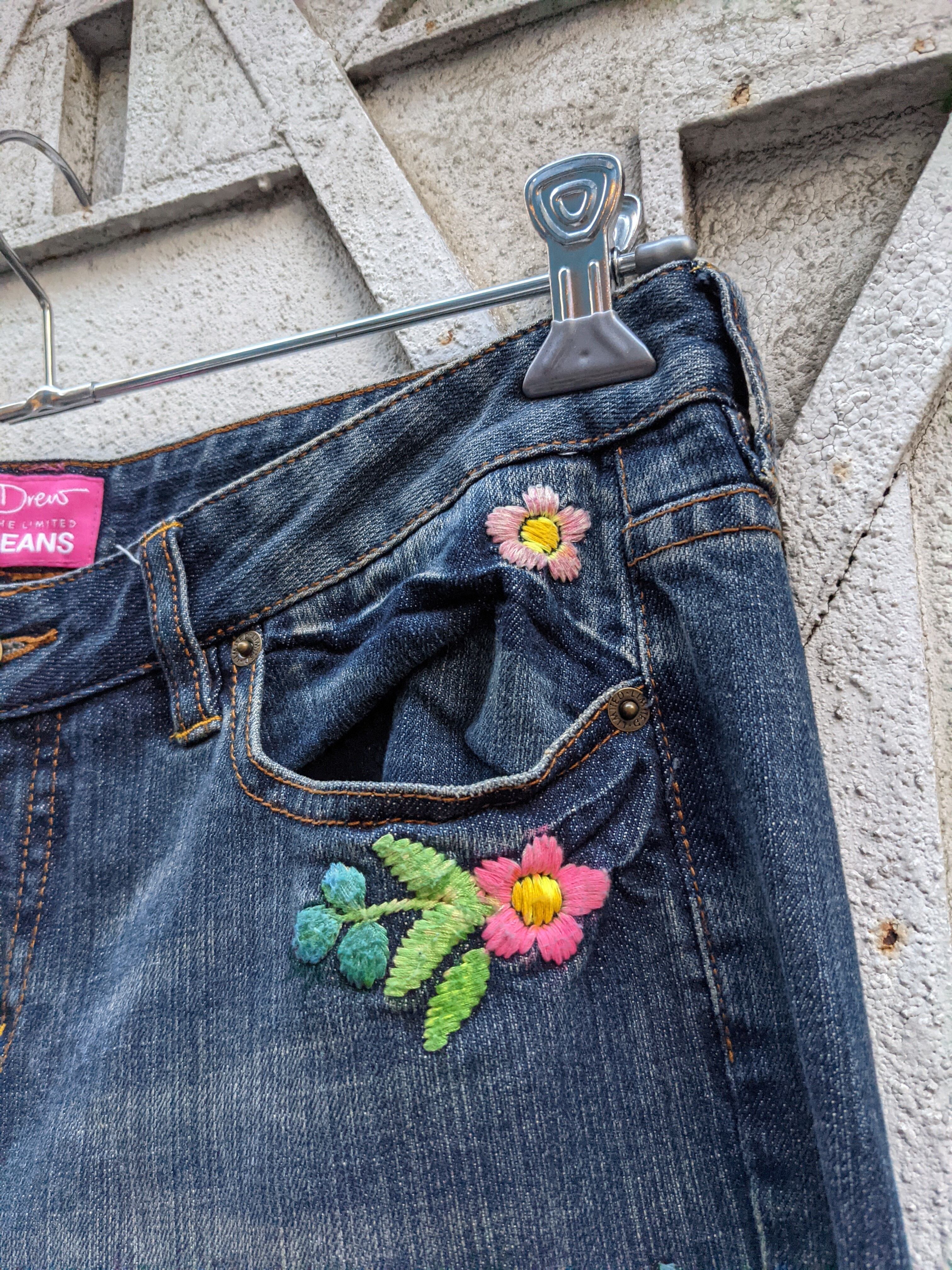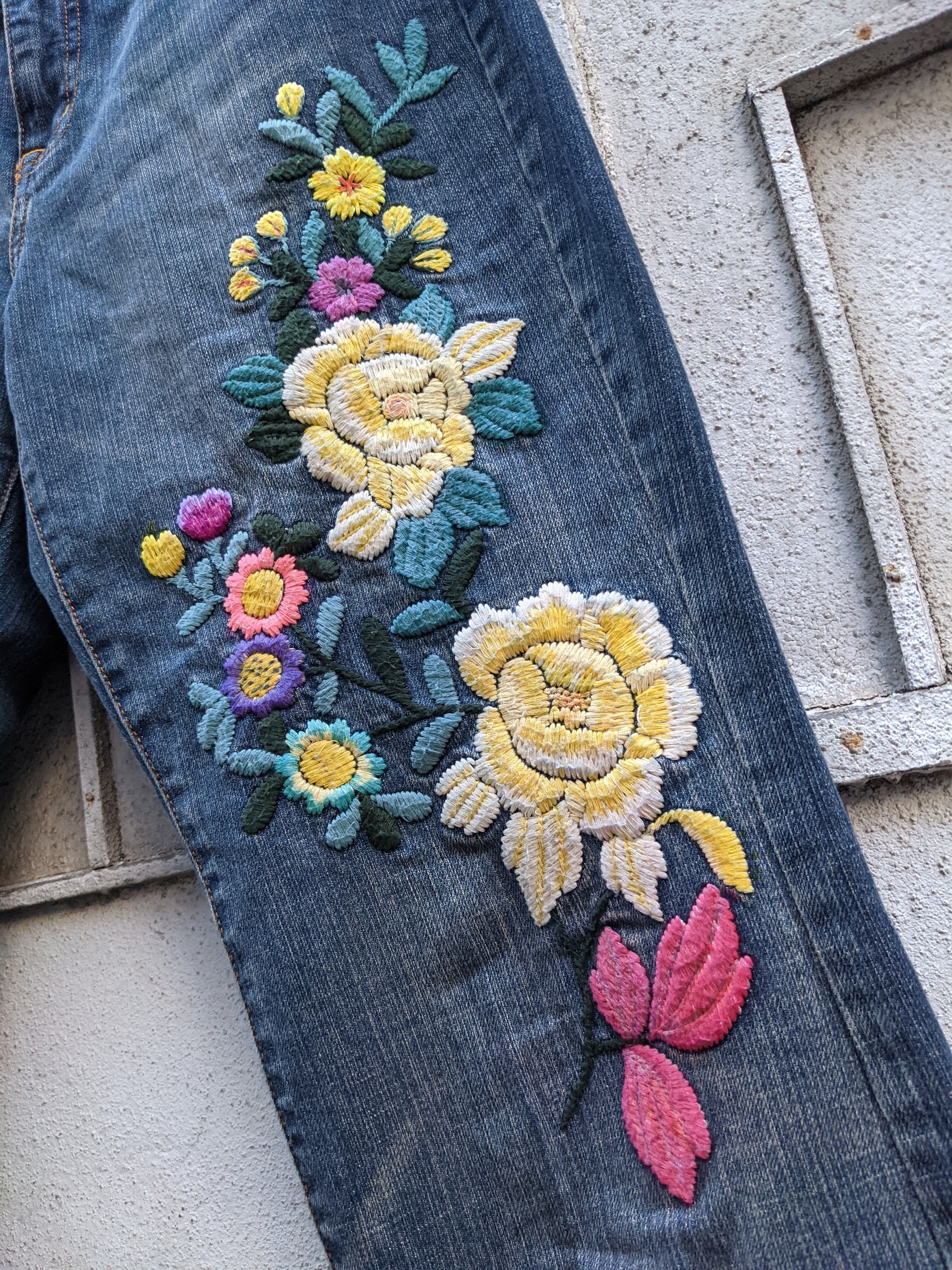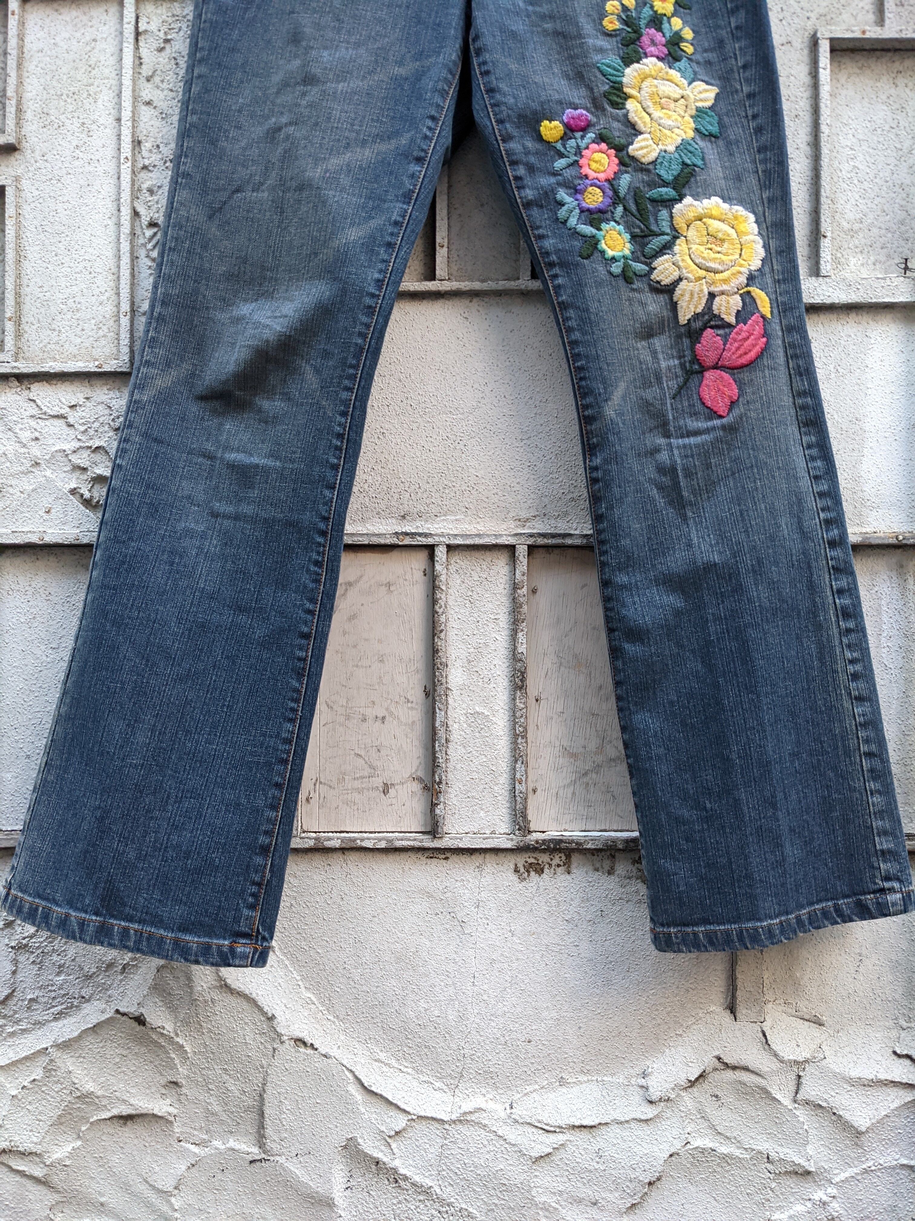 "FLOWER" embroidery flair denim pants